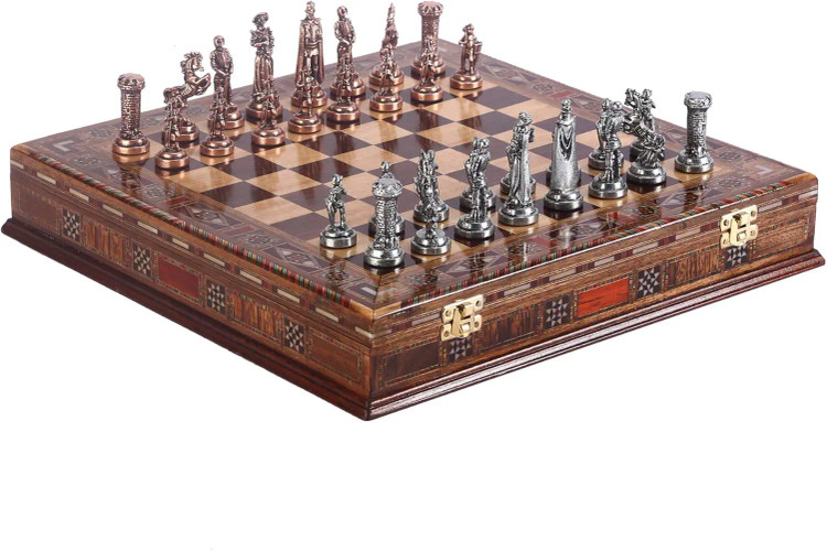 - صفحه شطرنج مدیوال ( قرون وسطی ) چوبی ساخته شده با مروارید ( بدون ترسیم , یعنی نقوش تماما کار دست بوده و بدون چاپ می باشد )
