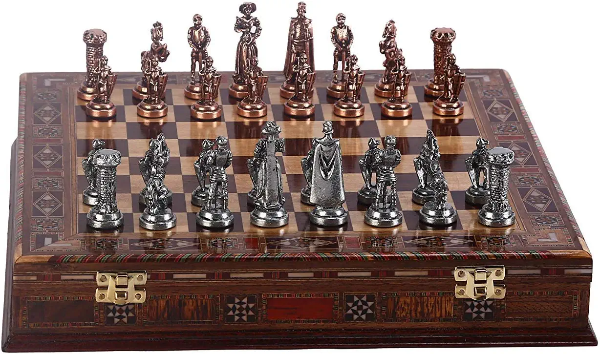 - صفحه شطرنج مدیوال ( قرون وسطی ) چوبی ساخته شده با مروارید ( بدون ترسیم , یعنی نقوش تماما کار دست بوده و بدون چاپ می باشد )
