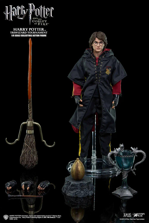 فیگور اکشن هری پاتر از star ace toys دارای لوازم جانبی شامل چوب دستی، تخم مرغ طلایی، جام Triwizard و چوب جارو فایربولت