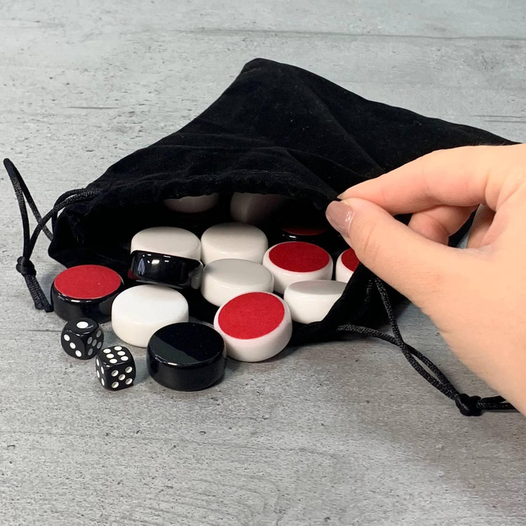 16 مهره سفید / 16 مهره سیاه / دو عدد تاس / کیف مخملی
